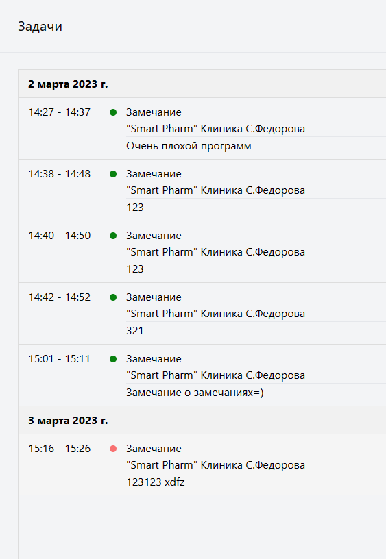 Для пользователей которым назначаются замечания, эти замечания дополнительно отображаются в разделе задач, на дату создания замечания. Отображаются только те замечания, которые относятся к непрошедшим мероприятиям.